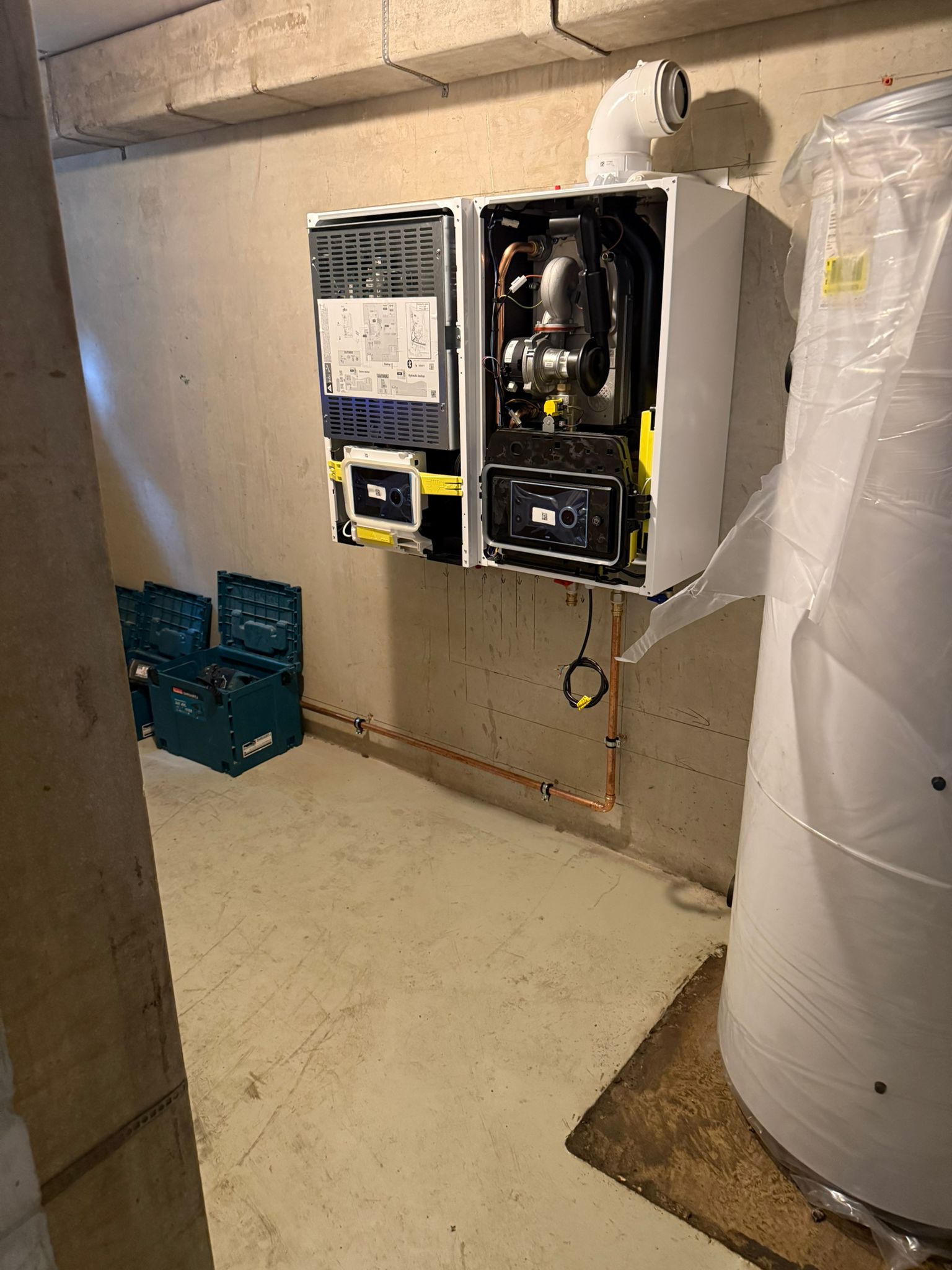 Dank dieser umfassenden Modernisierung kann das neue System flexibel auf die jeweiligen Wetter- und Verbrauchsbedingungen reagieren. An milden Tagen übernimmt die umweltfreundliche Wärmepumpe die Wärmeversorgung nahezu allein. Bei höherem Bedarf unterstützt das Gasbrennwertgerät – für maximale Effizienz, Komfort und Versorgungssicherheit.
