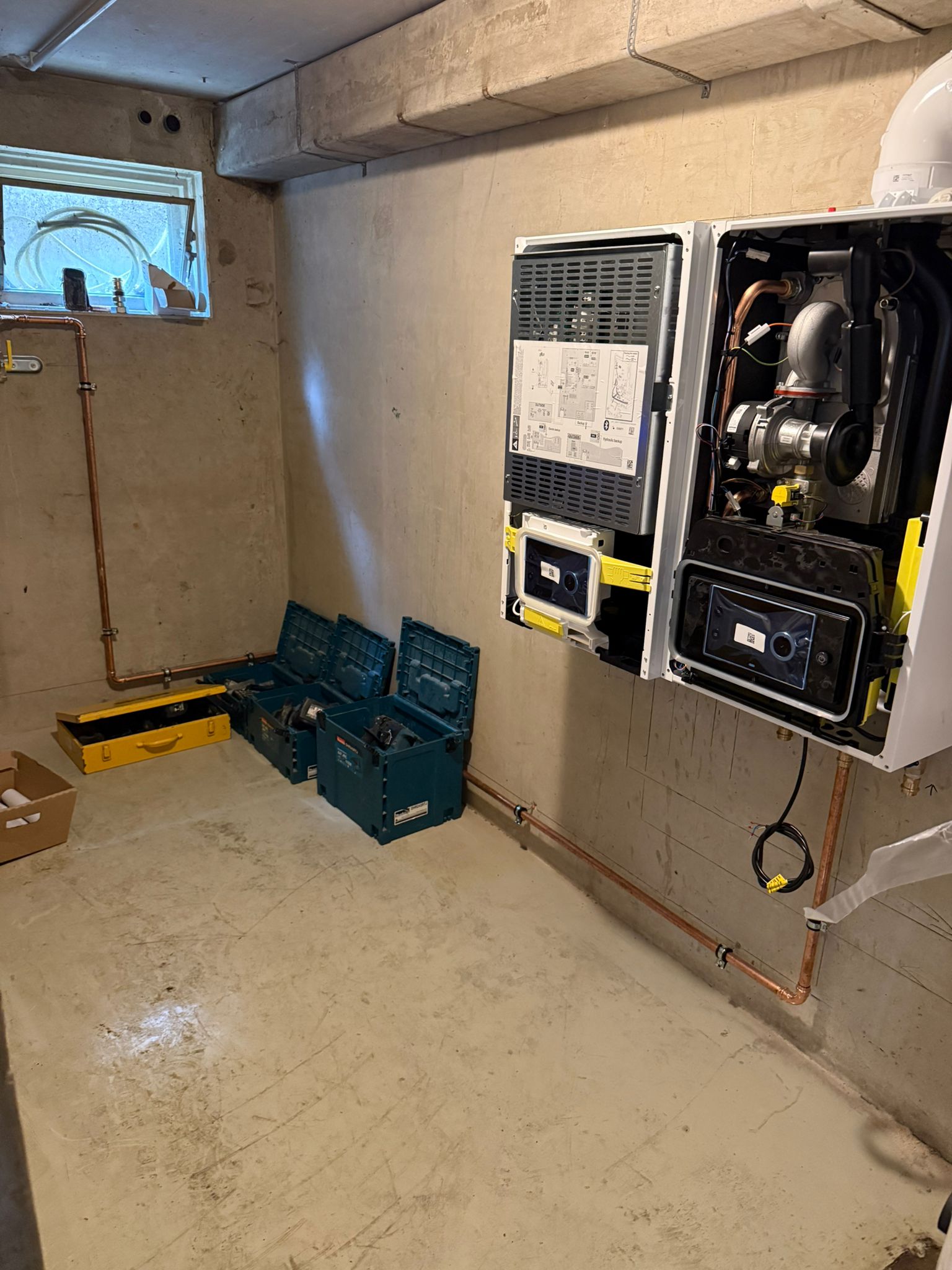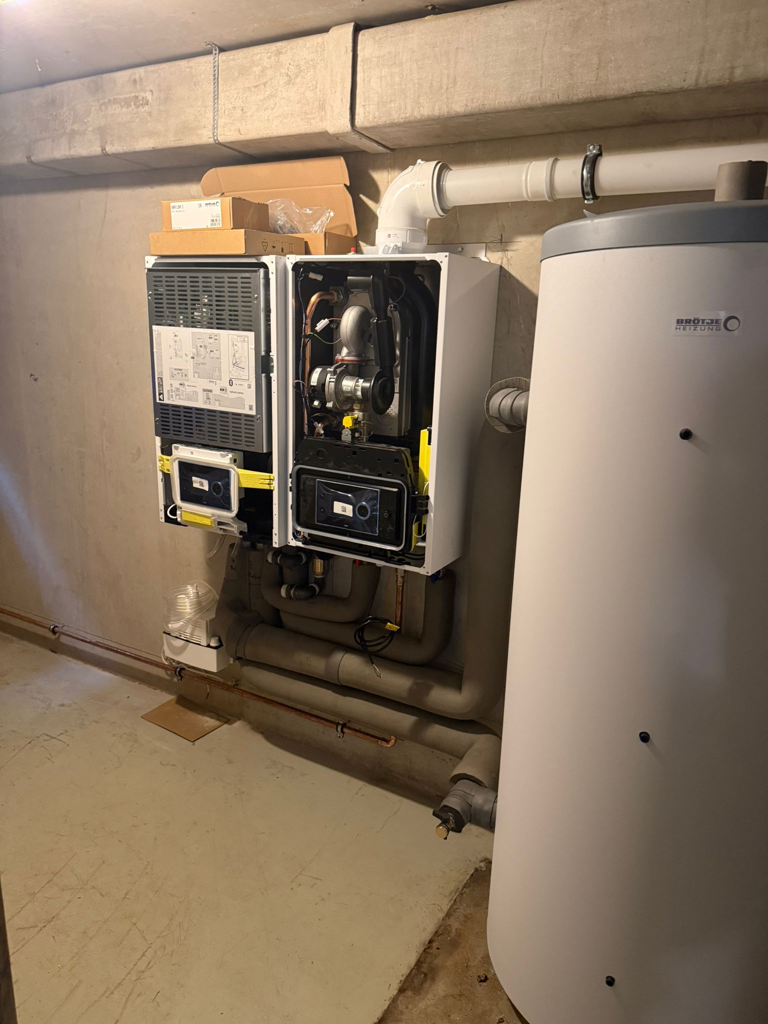 In unserem neuesten Projekt haben wir eine veraltete Ölheizung fachgerecht demontiert und durch ein zukunftsorientiertes Hybridsystem der Firma Brötje ersetzt. Die neue Anlage kombiniert eine moderne Luft-Wasser-Wärmepumpe mit einem effizienten Gasbrennwertgerät sowie einem Pufferspeicher.